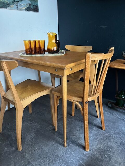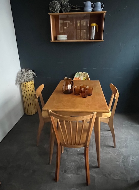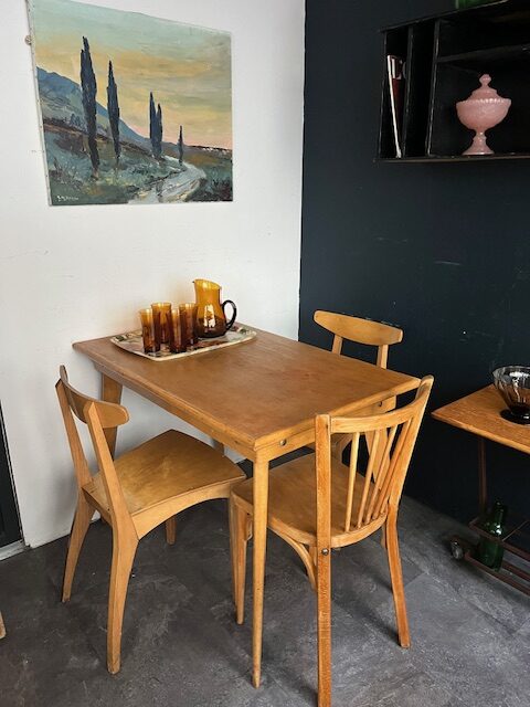 Tables STELLA, pieds compas des années 50.