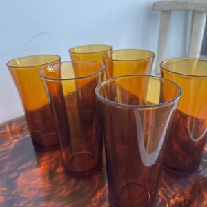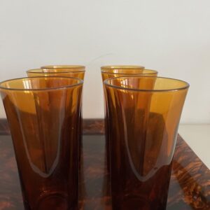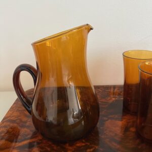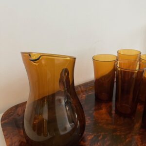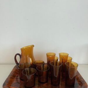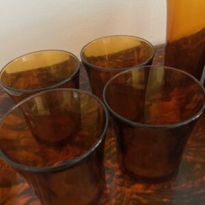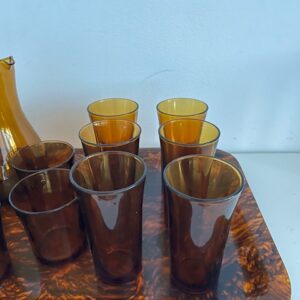 Set de 10 verres DURALEX et carafe en verre ambré;