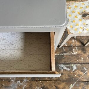 4 tiroirs dont les intérieurs ont été recouverts de papier peint posé