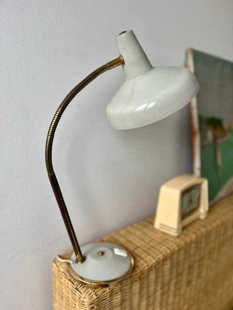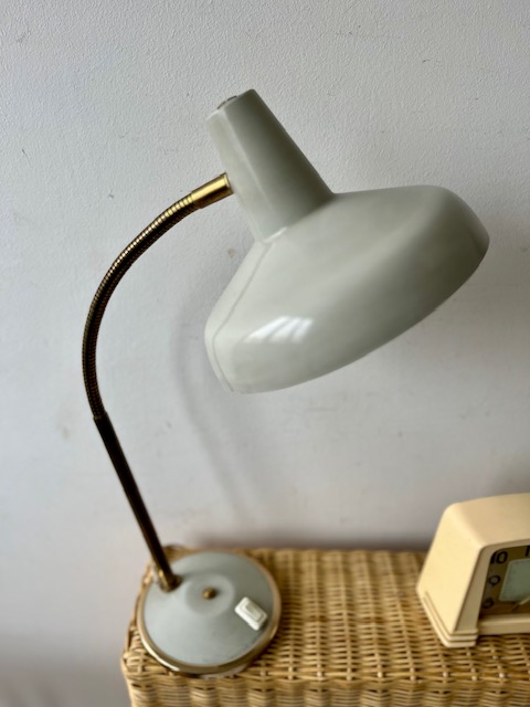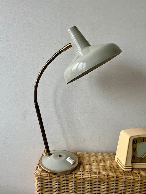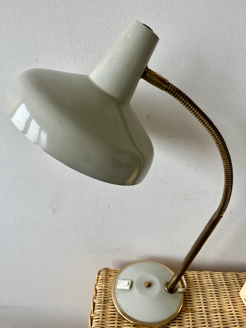 Lampe en métal et laiton grise.
